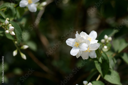 Obraz premium Mock orange (Philadelphus) white flowers close up on a bright summer day