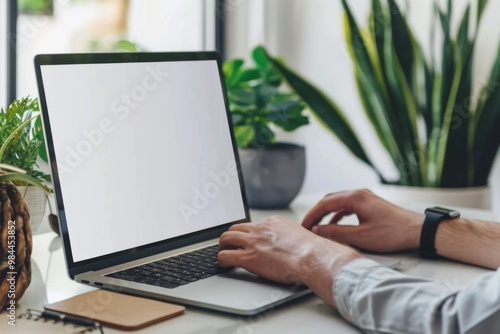 Fototapeta premium Mock up Copy Space Blank Screen Concept Business Working on Laptop.