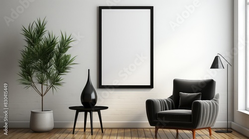 Fototapeta premium Mock up empty posters in modern living room interior with a fashionable design