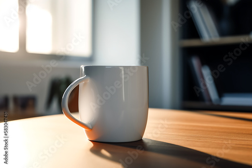 Fototapeta premium Mock up minimalist white ceramic mug in office, living room setting