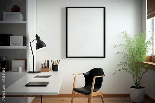 © Marvin, Fototapeta premium mock up modern living room with empty frame, interior design made with Generative AI