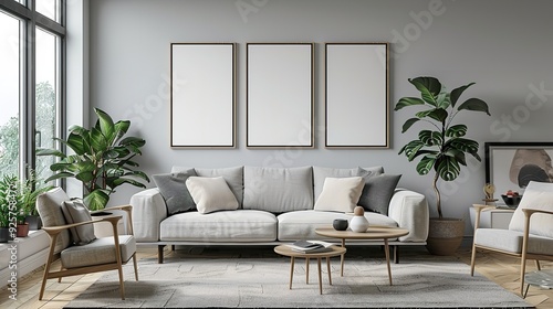 © Shahidaartworks, Naklejka premium Mock Up Poster Frame in Modern Interior Background