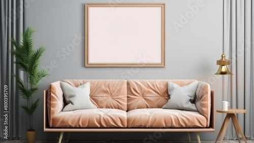 © wiparat, Naklejka premium mock up poster frame in modern interior background, living room