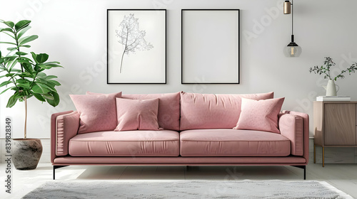 Fototapeta premium Mock up posters, pastel comfortable sofa, Living room