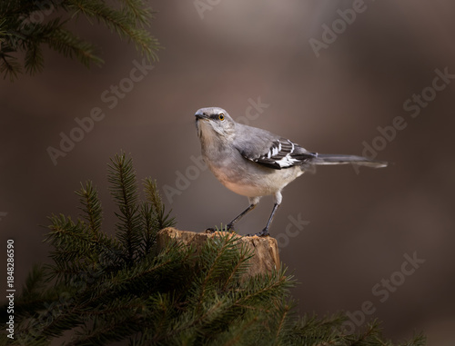 © Hal Moran, Obraz premium mockingbird on perch with pine needles