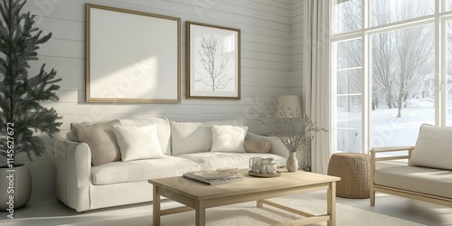 © Nana's photo exhibit, Fototapeta premium Mockup frame in farmhouse living room interior, 3d render