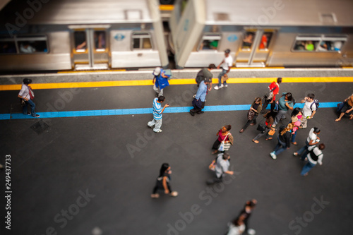 © tacio philip, Obraz premium Mockup model style urban landscape - people on subway train platform - real tilt-shift TS lens