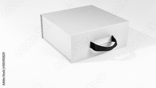 Fototapeta premium Mockup of a white box with a handle in volume for design