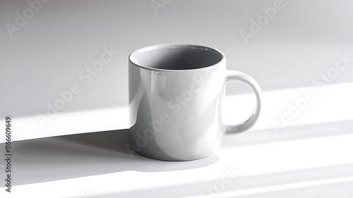 Obraz premium Mockup of Classic White Ceramic Coffee Mug in Minimalist Setting with Neutral Background
