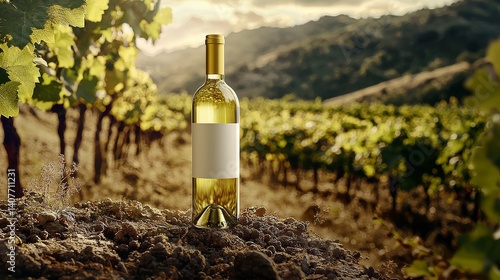 Fototapeta premium Mockup of White Wine Bottle in Vineyards