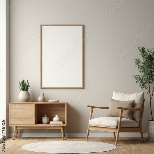Fototapeta premium Mockup poster frame in minimalist modern interior background, 3d render....