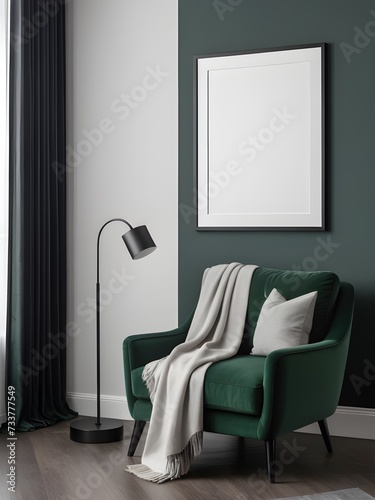 © Hala, Fototapeta premium Mockup poster frame on the wall of modern living room. Home interior mockup