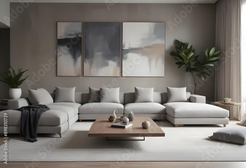 © Sharif54, Fototapeta premium Mockup poster frame on the wall of the living room. Luxurious apartment background with contemporary design. Modern interior design. 3D render