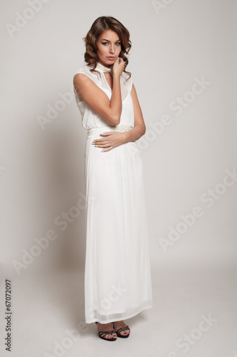 Fototapeta premium Model brunette with long curly hair. Studio photo