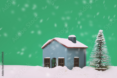 Fototapeta premium Model house and a pine tree with some snow