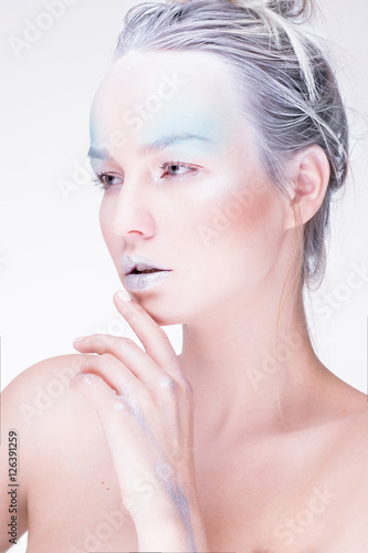 Fototapeta premium Model in creative image with silver blue artistic make-up
