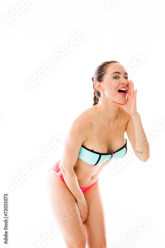 © bruno135_406, Fototapeta premium model isolated on plain background calling shouting