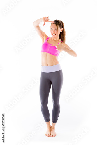 Fototapeta premium model isolated on plain background hand gesture framing focusing