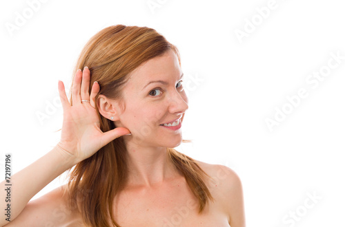 © bruno135_406, Fototapeta premium model isolated on plain background listening paying attention