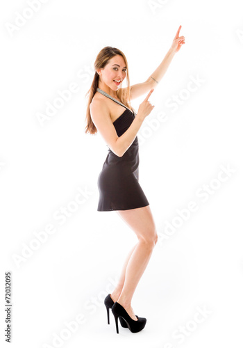 Fototapeta premium model isolated on plain background looking at camera pointing