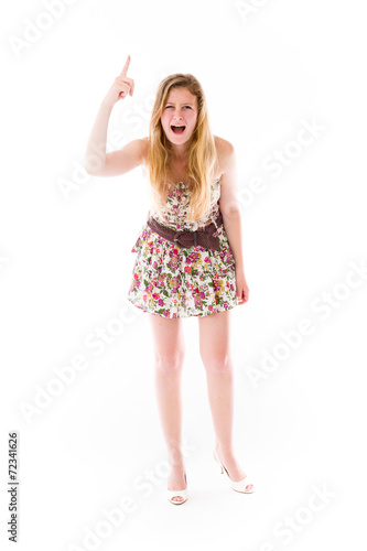 © bruno135_406, Naklejka premium model isolated on plain background nagging scolding with finger