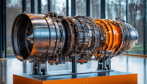 © c_ART_oons, Obraz premium model of a commercial jet engine on display