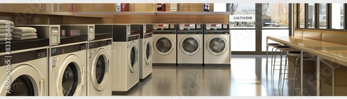 © Chano_1_na, Fototapeta premium model of Upscale laundry lounge with comfortable amenities and workspace