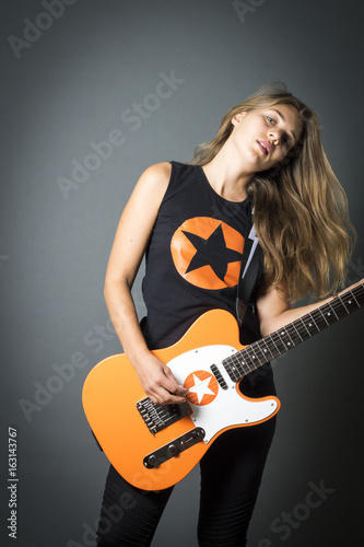 Obraz premium Model playing guitar and posing on stage