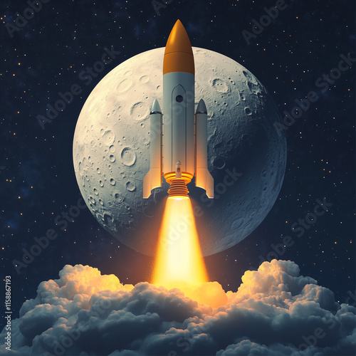 Obraz premium model rocket flying by the moon