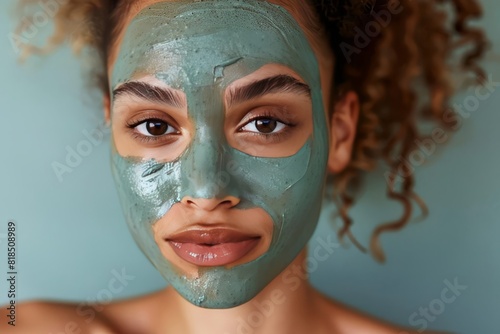 © Rainister, Fototapeta premium Model showing radiant skin after using a clay mask with earthy tones