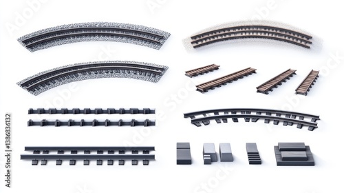 © akun, Fototapeta premium Model train tracks curves studio