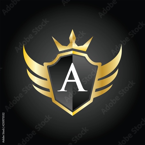 Obraz premium Modern A Crown Shield Wing Logo Illustration, Vector.