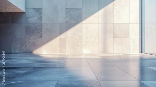 © Ruhi, Fototapeta premium modern abstract architectural pattern wall with stone tiled floor 3d render illustration