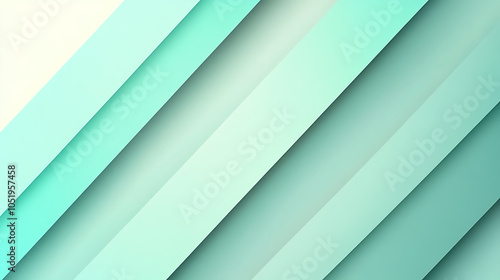 © Kompong, Obraz premium modern abstract background featuring layered mint green and light teal diagonal stripes, creating sense of depth and tranquility