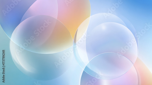 Naklejka premium Modern abstract background with smooth gradient colors, semi-transparent glass circles, soft blur effects, vector style, high resolution