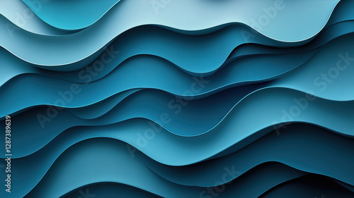 © Kashem, Fototapeta premium Modern abstract banner with smooth curved lines in teal dark blue and slate gray tones