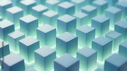 © Suparto, Fototapeta premium Modern abstract blue cube background with professional 3d render aesthetic