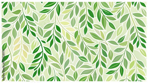 Fototapeta premium Modern Abstract Botanical Art with Green Leaves - Nature-Inspired, Floral Design, Geometric Patterns, Fresh Green Tones, Contemporary, Minimalist, High-Resolution, Decorative Background