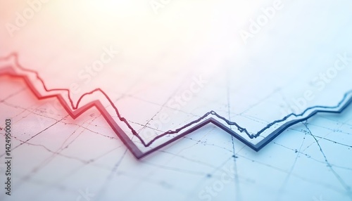 Naklejka premium Modern abstract chart with red and blue lines illustrating financial growth and market trends