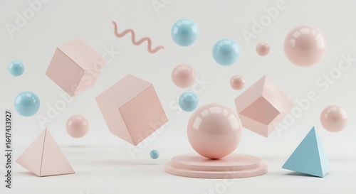 Obraz premium Modern abstract composition with 3D geometric figures on a white background.