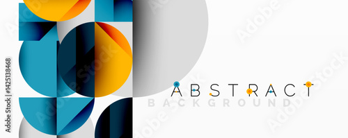 Obraz premium Modern abstract design features overlapping geometric shapes. Blue, orange,...