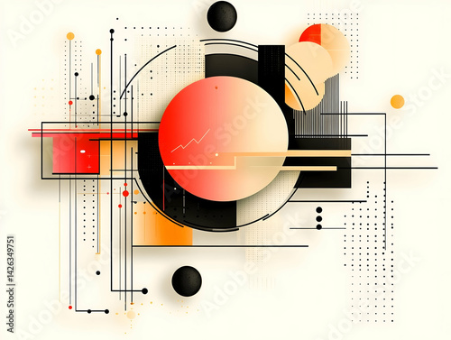 © bintank, Obraz premium Modern abstract design with geometric shapes and muted colors featuring circles lines and squares
