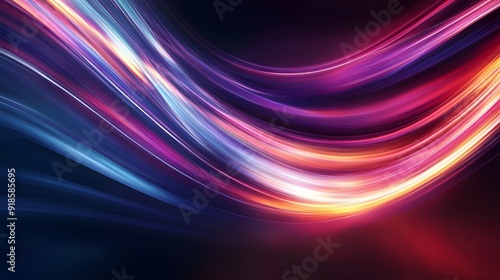 © plaksa, Fototapeta premium Modern abstract high-speed light effect. Abstract background with curved beams of light. Technology futuristic dynamic motion. Movement pattern for banner or poster design background concept.