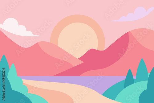 Obraz premium Modern Abstract Pastel Colored Nature Landscape in Ultra HD Vector Illustration Background