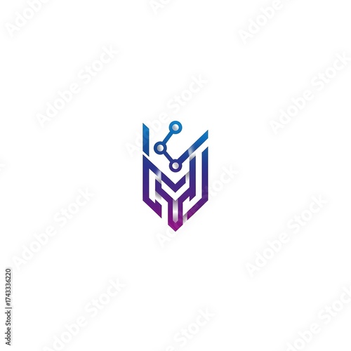 © vladimir, Fototapeta premium Modern abstract shield logo with interconnected nodes for technology and innovation concepts
