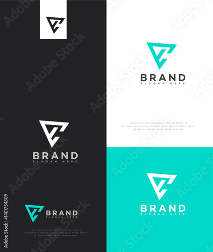 Naklejka premium Modern Abstract Triangular CV Logo Designs for Brand Identity