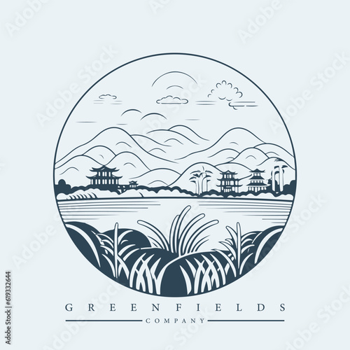 © serdjo13, Fototapeta premium Modern abstract vector logo template of fields and mountains