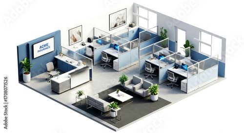 Obraz premium modern acme insurance office a 3d model of efficient workspace design, isolated on transparent background