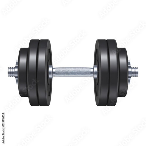Fototapeta premium Modern adjustable dumbbell with multiple weight plates and textured handle...