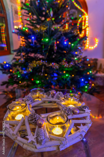 © Richard Semik, Naklejka premium modern advent wreath with christmas tree